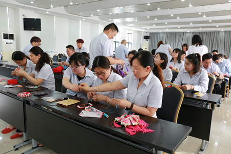 在活動開展前,公司工會精心策劃,提前準備了艾葉、薰衣草、具有驅蚊效果的中藥、針線包以及布料等制作香囊的材料。活動現場熱鬧非凡,公交員工們圍坐在一起,共同觀看了香囊制作步驟圖,隨后大伙兒紛紛拿起香囊材料,擼起袖子,摩拳擦掌,一副躍躍欲試的樣子。手工活比較巧的女同胞們大膽嘗試了難度系數較高的手工縫制香囊,她們拿起步驟圖仔細研究和琢磨,還時不時地交流技巧和心得。“陳姐,這個藏針縫法我們倆看了好幾遍說明,但還是不得要領,您教教我們吧。”“樊師傅,您看我這樣縫對嗎?”許多參與活動的80后、90后公交員工都是第一次制作香囊,她們在老師傅們的親自示范下最終獨立完成了縫制、裝香料、封口配繩、穿珠等工序,當一個個飽滿又精致的三角香囊做好后,她們的內心油然而生一股成就感,紛紛拿起手機拍照,在朋友圈曬出自己的手工成果。男同胞們也不甘示弱,選擇了相對比較簡單的手工灌裝香囊,你拿袋子,我裝香料,大家分工配合,不一會兒就做了許多漂亮又實用的香囊,得到了在場女同胞的夸贊,難得展現了硬漢柔情的一面。