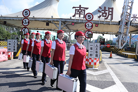此次女員工換裝是南湖收費站文明服務提升工作的舉措之一。南湖收費站作為嘉興的形象窗口,高速管理公司高度重視,不斷在“安全暢通”和“文明服務”上下功夫。今年上半年,南湖收費站還進行了升級改造,增設自助發卡通道,增開出口通道,提升收費站區綠化環境,全力為司乘打造便捷、高效、整潔、優美的通行環境。