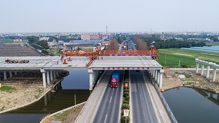 灣北二期項目完成跨320國道橋梁板架設